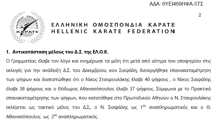 Ο Γραμματέας έλαβε τον λόγο και ενημέρωσε τα μέλη ότι μετά από αίτημα του υποψηφίου στις εκλογές για την ανάδειξη Δ.Σ. του Δεκεμβρίου, κου Σιαψάλη, διενεργήθηκε επανακαταμέτρηση των ψήφων και διαπιστώθηκε ότι ο Νίκος Σταυρουλάκης έλαβε 40 ψήφους , ο Νίκος Σιαψάλης έλαβε 38 ψήφους και ο Θόδωρος Αθανασόπουλος έλαβε 37 ψήφους. Σύμφωνα με το Πρακτικό επανακαταμέτρησης των ψήφων, που κατατέθηκε στο Πρωτοδικείο Αθηνών ο Ν. Σταυρουλάκης εκλέγεται ως τακτικό μέλος του Δ.Σ., ο Ν. Σιαψάλης ως 1ος αναπληρωματικός και ο Θ. Αθανασόπουλος ως 2ος αναπληρωματικός.