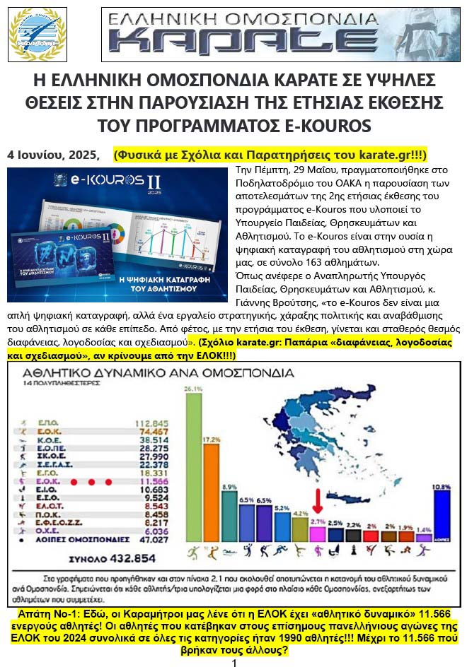 4 - Και τέλος, η Διοίκηση της ΕΛΟΚ "εντυπωσιάζει" με τις κατάφορες παρανομίες της και την οικονομική εκμετάλλευση της ομοσπονδίας, των αθλητών και των γονιών τους!