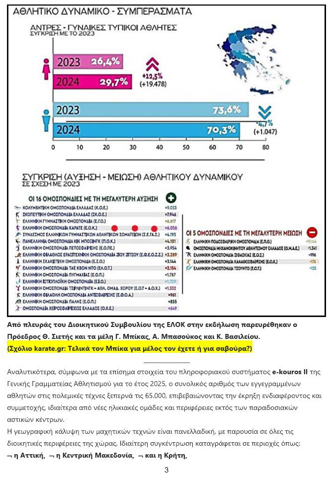 τις δηλώσεις περί 203 σωματείων και 11.566 ενεργών αθλητών της ΕΛΟΚ και