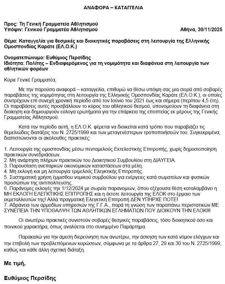 Σε πρώτη δημοσίευση από 16/12/2021 και αναδρομικά σε παλαιότερα άρθρα του www.karate.gr! Ω = Η επιτυχής κατάληξη των δικαστικών υποθέσεων του Θύμιου Περσίδη στο ΕΔΔΑ! . (Ενότητες) Οι Αποφάσεις της 16/12/2021 του ΕΔΔΑ στις "Δύο" και της 1/12/2022 στη "Μία" Προσφυγές "PERSIDIS vs GREECE"! Το www.karate.gr, σαν συνέχεια του από το ΝΟΕ-1977 μέχρι το ΔΕΚ-1994 με εκδότη τον Θύμιο Περσίδη κυκλοφορούντος μηνιαίου αθλητικού περιοδικού "ΔΥΝΑΜΙΚΟ ΤΖΟΥΝΤΟ-ΚΑΡΑΤΕ" αρχικά και απλά "ΔΥΝΑΜΙΚΟ" αργότερα, είναι ένας "δημοσιογραφικός ιστότοπος", που γράφεται από έναν κορυφαίο γνώστη στον ειδικό χώρο του καράτε. Όσα πρόσωπα κρίνονται εδώ είναι αποδεδειγμένα δημόσια πρόσωπα και κρίνονται για πράξεις και παραλήψεις τους στους τομείς των δημόσιων αρμοδιοτήτων τους υπό τα ευρύτερα όρια κριτικής αξιολόγησης, όπως απαιτεί η διαφύλαξη του δημοσίου συμφέροντος για τον αθλητισμό, τον οποίο χρυσοπληρώνει ο Έλληνας φορολογούμενος!!! Ως επί 17 χρόνια εκδότης του ανωτέρω περιοδικού και από τον Αύγουστο του 2004 ιδιοκτήτης-διαχειριστής του www.karate.gr, αλλά και ως υπέρ των σαράντα ετών διοικητικός αθλητικών ομοσπονδιών καράτε, έχω δικαστεί σε περισσότερες από 80 δίκες (Πρωτοδικείου, Εφετείου, Αρείου Πάγου κτλ.) σε αστικές, ποινικές και διοικητικές υποθέσεις με νίκες ή παραγραφές για τις περισσότερες από αυτές. Για δύο αστικές (με ασφαλιστικά) και μία ποινική (με μία αναίρεση δεκτή!) υποθέσεις, σύνολο 4+4+5=13 δίκες που έχασα, με αντικείμενο κυρίως τη συκοφαντική δυσφήμιση, είχα υποβάλει αντίστοιχα τρεις Προσφυγές (δύο το 2014 και μία το 2015, με κλικ εδώ) στο Ευρωπαϊκό Δικαστήριο Δικαιωμάτων του Ανθρώπου (ΕΔΔΑ) με ΠΑΡΑΠΟΝΑ για λανθασμένη εφαρμογή από τους Δικαστές υπέρμετρου περιορισμού στην ελευθερία της έκφρασης στα κείμενά μου, τα οποία αφορούσαν σε κριτικές αξιολογήσεις πράξεων δημοσίων προσώπων, παρ' όλο που υπέβαλα πάντα και σχετικές αποφάσεις του ΕΔΔΑ! Τις Προσφυγές αυτές τις είχα συντάξει μόνος μου χωρίς τη βοήθεια νομικού! Τέτοιες Προσφυγές υποβάλλονταν τότε στο ΕΔΔΑ περί τις 30.000 κάθε χρόνο από όλη την Ευρώπη και απορρίπτετο το 95% αυτών από το γραμματειακό πρωτόκολλο και την αρχική εκτίμηση του παραδεκτού της προσφυγής! Οι δικές μου πέρασαν και οι τρεις τα δύο αυτά στάδια μέσα στο ελάχιστο 5% για να δικαστούν!!! Πριν όμως δικαστούν, το Νομικό Συμβούλιο του Κράτους (ΝΣΚ), που παρίσταται νομικά στο ΕΔΔΑ για την Ελληνική Κυβέρνηση, μού πρότεινε Συμβιβασμό με Αποζημίωση για παράβαση από τα δικαστήρια του άρθρου 6 περί μη δίκαιης δίκης και του άρθρου 10 περί ελευθερίας της έκφρασης της Ευρωπαϊκής Σύμβασης Δικαιωμάτων του Ανθρώπου (ΕΣΔΑ) αρχικά για τις δύο αστικές και μετέπειτα και για την ποινική! Αποδέχθηκα το Συμβιβασμό με την Αποζημίωση, διότι οι υποθέσεις είχαν αργήσει απαράδεκτα πάρα πολύ (εξίμισι χρόνια!), ενώ ήταν και οικονομικά συμφερότερος από το να εκδικαστούν! Η επιτυχία αυτή με κατέστησε το μόνο γνωστό Έλληνα Πολίτη, που χωρίς να είναι νομικός κατάφερε να δικαιωθεί σε τρεις ιδιόγραφες Προσφυγές του στο ΕΔΔΑ!!! Δεν υπάρχει δε καμιά αμφιβολία ότι η ανωτέρω πρόταση Συμβιβασμού αποτελεί παραδοχή ήττας, αφού το Δημόσιο δεν χαρίζει ούτε δεκάρα στον Πολίτη! Το κυριότερο, όμως, είναι ότι το www.karate.gr αναγνωρίστηκε από το ΕΔΔΑ ως δημοσιογραφικό site υπό την ευρεία έννοια και μπορεί πλέον ελεύθερα να κρίνει αξιολογικά πράξεις και παραλήψεις δημοσίων προσώπων στους τομείς των δημοσίων καθηκόντων τους με ευρύτερα πλαίσια εκφ