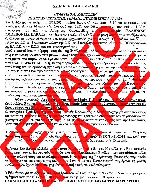 το Αρχικό Πρώτο Πρακτικό της ΓΣ της 1/12/2024 αποτελεί ΑΛΛΟ έγγραφο και