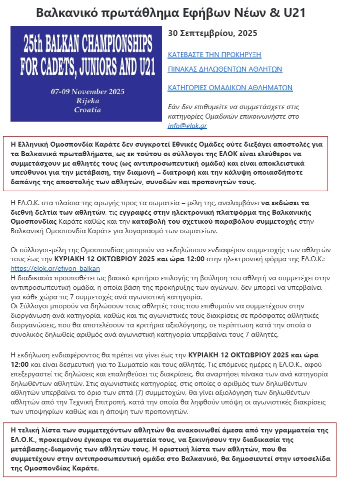 30/11/2025 - / Στηρίξτε το karate.gr με 20 €/έτος! Donations 20€/y! |