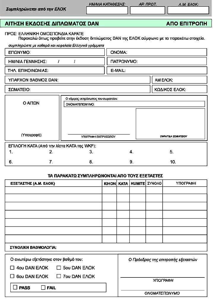 Η Αίτηση για 4ο έως 6ο Νταν της ΕΛΟΚ!