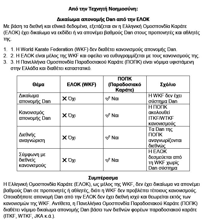 Στα διπλώματα Νταν της ΕΛΟΚ γράφεται: "3ο Νταν ΕΛΟΚ από την ΕΛΟΚ"!!! Δηλαδή, 3ος βαθμός ΕΛΟΚ από την ΕΛΟΚ! Πού είναι γραμμένο το στυλ καράτε στο οποίο έχει απονεμηθεί το 3ο Νταν? Η ΕΛΟΚ είναι στυλ καράτε? Είσαστε τρελοί για δέσιμο όσοι δίνετε τα λεφτά σας σε αυτούς τους απατεώνες!!!