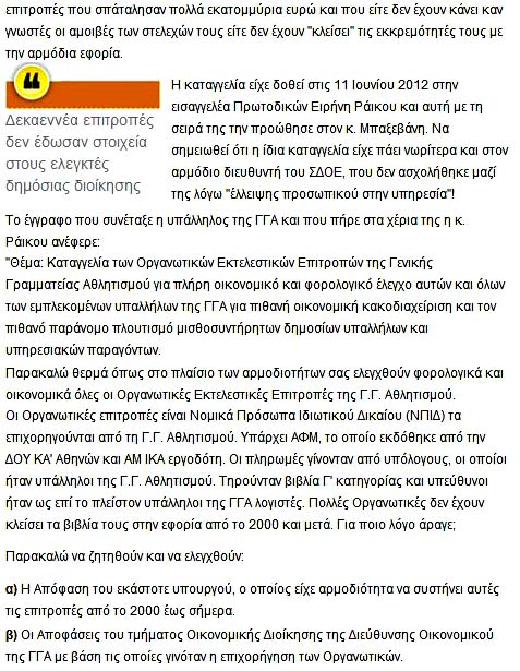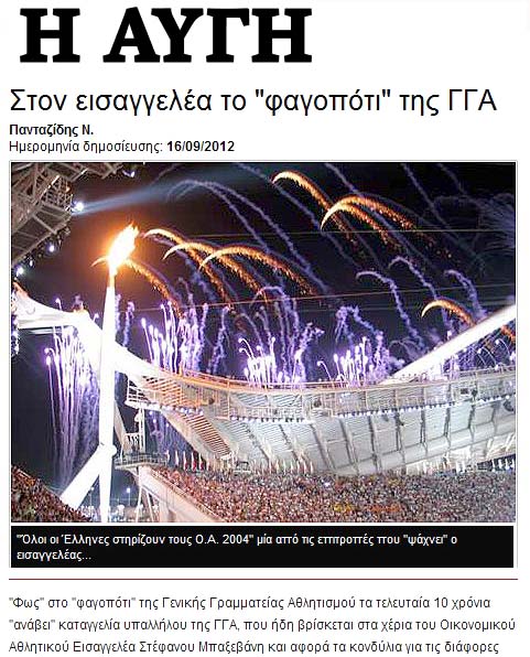 Εικοσαετές Όργιο Πολιτικών, Αθλητικών και Οικονομικών Εγκλημάτων! Από όλες τις μεριές καταγγέλλεται η διαφθορά και η διαπλοκή στη Γενική Γραμματεία Αθλητισμού!!! Υπάλληλοι με πολιτική ηγεσία, πολιτική ηγεσία με ομοσπονδιάρχες, υπάλληλοι με ομοσπονδιάρχες!!! Η Αυτοκρατορία της Διαφθοράς και της Διαπλοκής! Μια ανέλεγκτη, τεράστια τρύπα διαρροής του δημόσιου χρήματος προς κάθε ημέτερο !!! |