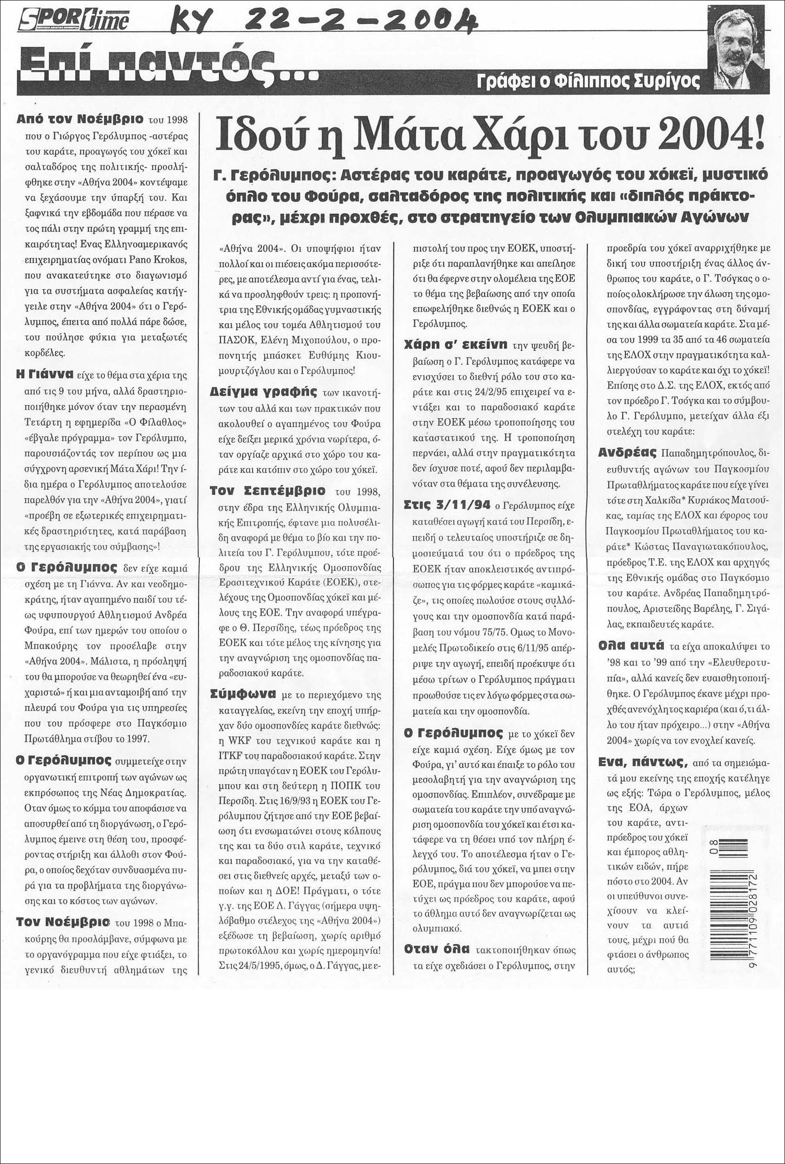 18/02/04 – Δημοσιεύματα του “Φίλαθλου” για τον Γερόλυμπο 19/02/04 – Δημοσιεύματα του “Φίλαθλου” για τον Γερόλυμπο (συνέχεια)