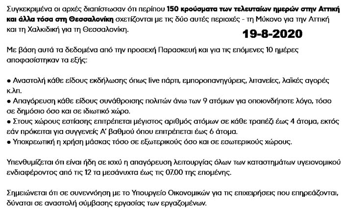 Με κλικ στον τίτλο δίνονται οι νέες σούπερ-πολύπλοκες οδηγίες της Επιστημονικής Υγειονομικής Επιτροπής της ΓΓΑ μετά τις εξάρσεις του κοροναϊού κατά τον Αύγουστο! Αξίζει να τις διαβάσετε!