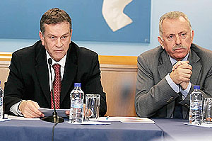 (ανάμεσά τους ο πρόεδρος της ΕΟΕ, Μίνως Κυριακού, και ο πρώην πρόεδρος, Λάμπης
