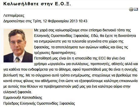 Αλλά ας δούμε με τα φτωχά μέσα που μας δίνετε εσείς οι ίδιοι στους ιστότοπους των ομοσπονδιών σας, όπου ωραιοποιείτε συστηματικά την πραγματικότητα, τι σόι ομοσπονδίες διοικείτε και πώς τις βλέπει ο απλός Έλληνας Πολίτης, που σας πληρώνει τα έξοδα, ώστε να "πουλάτε μούρη" στο Μαρμάρινο Κτίριο της Λεωφόρου Κηφισίας!!