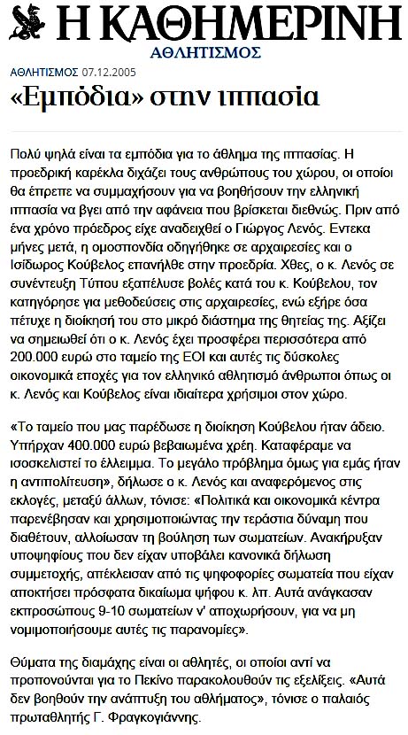 Στη συνέχεια θεωρείται σκόπιμο να θυμίσουμε την "Ολομέλεια" της Ελληνικής Ολυμπιακής Επιτροπής από το site της και το [Απληροφόρητοι και Ανεγκέφαλοι οι "Ημίθεοι" της Ελληνικής Ολυμπιακής Επιτροπής!]: