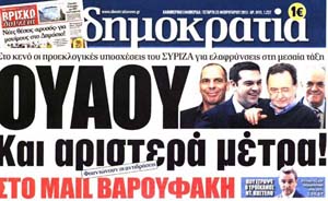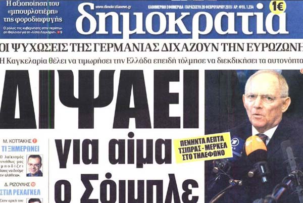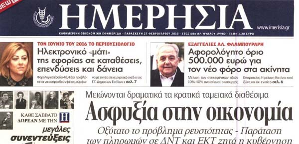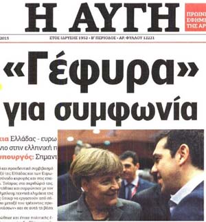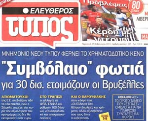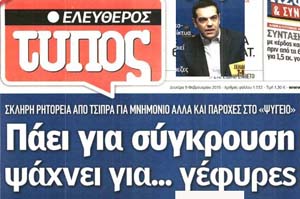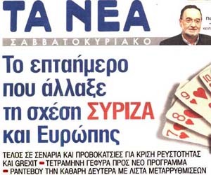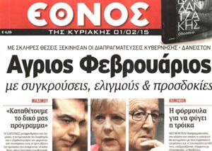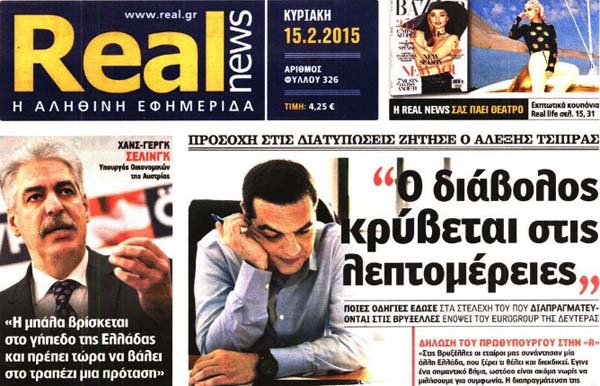 Και σε δεύτερη φάση δείτε τα κυριότερα πρωτοσέλιδα του ΦΕΒ 2015 και κρίνετε τη σχέση τους με την πραγματικότητα, που μας απειλεί!!!