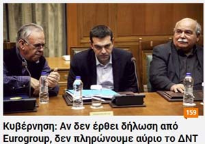 Θα πληρωθούν στην ώρα τους ??? 27-29/5/2015: 900 εκ. σε Ταμεία ==> ??? 27-29/5/2015: 400 εκ. σε τόκους ==> ??? 27-29/5/2015: 1100 εκ. σε μισθούς-συντάξεις ==> ??? |