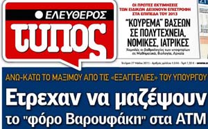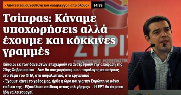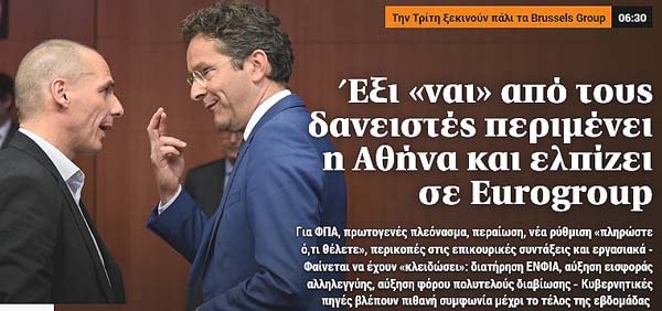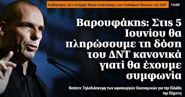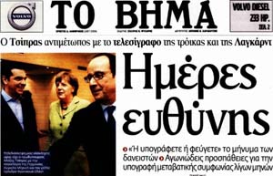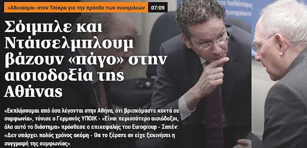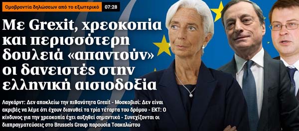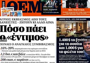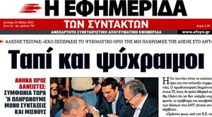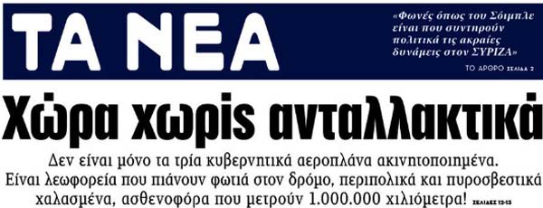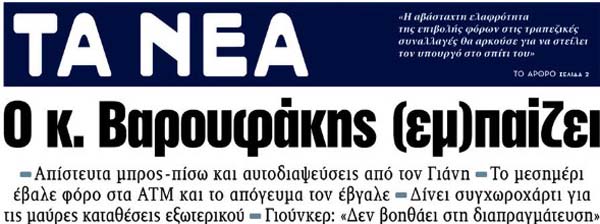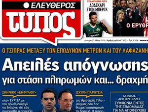 Το κύριο άρθρο κάθε εφημερίδας επιλέγεται από τον εκδότη της να αναφέρεται στο κυριότερο θέμα δημοσίου ενδιαφέροντος της ημέρας και ο τίτλος του αποδίδει περιεκτικά και κατά το δυνατό την πραγματική διάσταση αυτού του θέματος. Κατωτέρω επιλέγονται οι τίτλοι των κυρίων θεμάτων των κυριοτέρων εφημερίδων, που δείχνουν την εξέλιξη της οικονομικής κατάστασης της χώρας. Βέβαια, ανάμεσα σε αυτούς δίνονται στην κρίση σας και μερικοί "κακοήθεις", που έχουν στόχο τον αποπροσανατολισμό, ή "άσχετοι" για αναγνώστες στον δικό τους κόσμο!!!