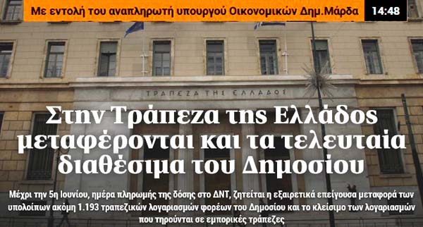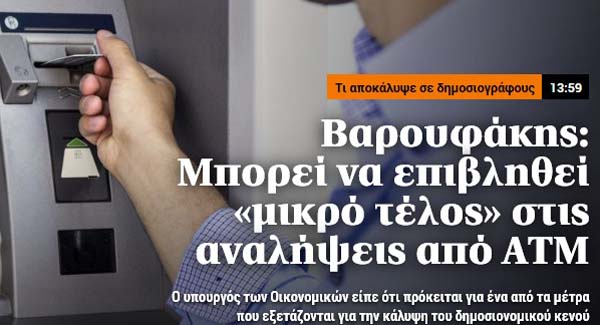 Το απόγευμα της 28ης Απριλίου έπρεπε να πληρωθούν μέσω τραπεζών οι συντάξεις του Μαΐου, οι οποίες μπαίνουν στους λογαριασμούς των δικαιούχων περί την 6η απογευματινή. Στα ΑΤΜ των τραπεζών δημιουργήθηκαν ουρές μέχρι τις 10 το βράδυ, διότι οι συντάξεις ΔΕΝ είχαν μπει ακόμα! Εγώ προσωπικά μπήκα στον λογαριασμό μου μέσω e-banking, αλλά με πέταξε έξω για ... τεχνικούς λόγους! Ποτέ Τράπεζα δεν χάνει τη λειτουργία των ηλεκτρονικών της συναλλαγών!Την επόμενη μέρα το πρωί ο Στρατούλης είπε σε κανάλι ψευδέστατα και χωρίς να ντρέπεται: "Είχε βλάβη το ΔΙΑΣ"!!! Το πιθανότερο είναι να είχε δοθεί εντολή από την Κυβέρνηση να κλείσουν οι τράπεζες το ηλεκτρονικό τους σύστημα για λίγες ώρες! Το γεγονός της ΜΗ ΥΠΑΡΞΗΣ χρημάτων την ημέρα της πληρωμής τους αποδεικνύει ότι τον επόμενο μήνα να πληρωθούμε με "Νέο Χρήμα" τα χιλιάρικα, που βλέπετε, στα οποία όλα τα καταλαβαίνετε εκτός από το "ΣΧ", που σημαίνει "Στα Χρωστάω"!!! Μακάρι να κάνω λάθος!!! |