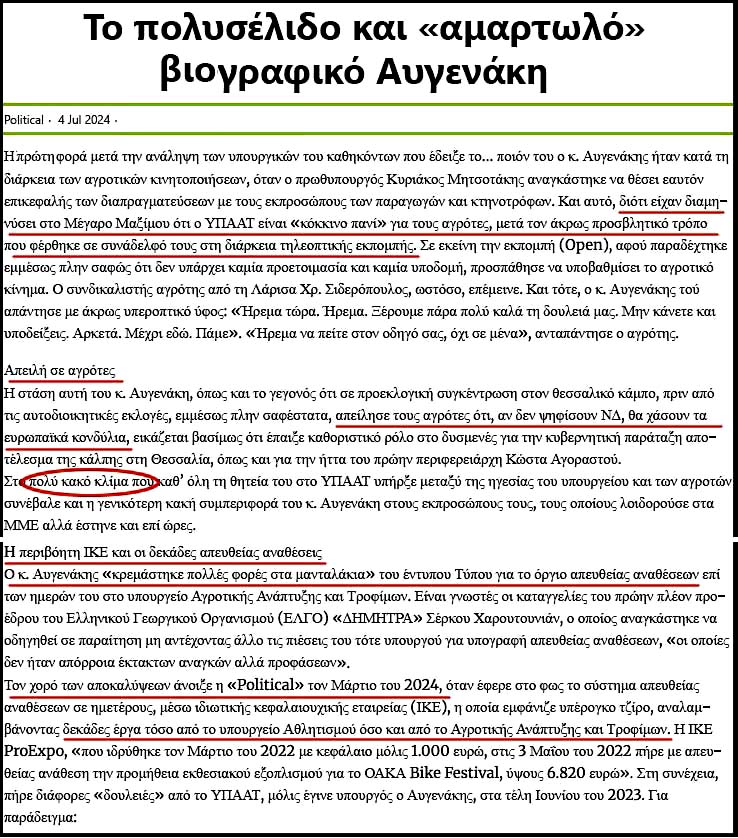 Από το διαδίκτυο πολά περίεργα για τον Αυγενάκη και τις εύνοιες, που τον "ανέβαζαν":