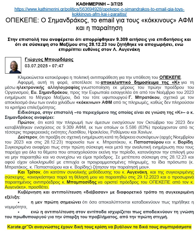 Δημοσίευμα της ΚΑΘΗΜΕΡΙΝΗΣ της 3/7/2025.