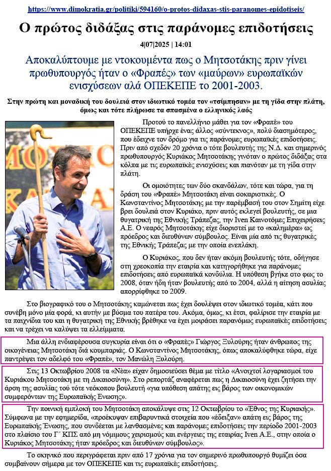 30/6/25-Μας έχετε γεμίσει τη χώρα με απατεώνες κύριε Μητσοτάκη! Ατιμώρητα Εγκλήματα και Καθημερινές Απάτες! ΟΠΕΚΕΠΕ και ... Πάσης Ελλάδος: Βοσκοτόπια και στις βραχονησίδες! Οι "Αδιάφθοροι" της ΓΓΑ και το Γκανγκστεριλίκι της χαϊδεμένης ΕΛΟΚ!